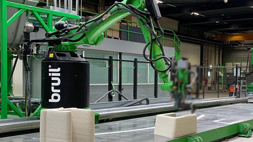 Bruil was in diezelfde periode, in reactie op de economische crisis die de bouw in een diep dal stortte, een onderzoek gestart naar kansrijke innovatiemethodes om de marktpositie van het bedrijf te versterken. Daaruit kwamen vijf businesscases waaronder 3D-printen van architectonisch beton. “Het was een moonshot”, zegt Gerard Engelenburg, commercieel manager bij Bruil. “In die tijd was het 3D-printen met kunststof wel bekend maar hoe dat met beton te doen, wisten we totaal nog niet.” Het bedrijf beschikte al over betontechnologen en een robotarm, trok een nieuwe medewerker aan om de benodigde software te ontwikkelen, en ging aan de slag met mortelrecepten. In 2015 deden ze de eerste tests en presenteerden hun eerste 3D-geprinte betonelement op de Gevel2016-beurs in Rotterdam. Daar benaderde Van Leeuwen, die eerder al met Bruil in Den Helder werkte aan woningbouwrenovaties, het bedrijf met de vraag of het mogelijk was om zijn ontwerp voor de flats te produceren. Bruil moest hem in eerste instantie nee verkopen. “We waren nog niet ver genoeg, hadden geen geschikte printerkop, en te weinig controle over de afwerking.” Het onderzoeksteam sleutelde daaraan door, terwijl Engelenburg contact hield met Van Leeuwen. Gaandeweg bleek het haalbaar om de balkons te produceren in de 3D-printfabriek die het bedrijf in Veenendaal was begonnen.