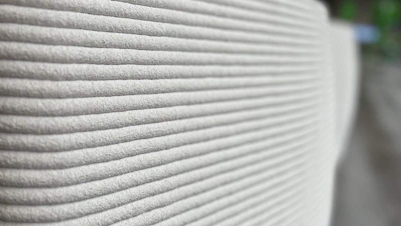 3D-printen gaat in laagjes, die precies op elkaar moeten aansluiten. Dat vraagt om een uitgekiende betonmix, die vloeibaar genoeg is om door de printerkop te stromen, en vast genoeg om niet tijdens het uitharden uit te zakken. De gelaagde ‘ribbelstructuur’ bezorgde Engelenburg en zijn collega’s de nodige hoofdbrekens. “In het begin was ons grootste vraagstuk: hoe ga je het beton glad krijgen, zoals bij andere prefab elementen? Maar de architecten zeiden: die laagjes zijn inherent aan 3D-printen, die moet je juist niet wegpoetsen. Dat was een eyeopener. We zijn trots dat we die laagjes uiteindelijk mooi op elkaar hebben gekregen. Want het is een ding om mooie plaatjes te tonen van een 3D-geprint object, maar om vervolgens 1400 elementen te maken met dezelfde kwaliteit, is iets heel anders. Dat is hier gelukt.”