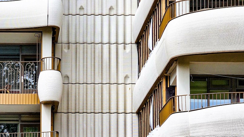 Hoe verander je een gedateerde galerijflat in een ‘paleis’ in de sfeer van Antoni Gaudi’s Casa Mila in Barcelona, met zijn glooiende gevels en rijkdom aan ornamenten? Dat was de vraag die architect Ron van Leeuwen zichzelf stelde toen hij in 2015 opdracht kreeg om twee na-oorlogse galerijflats aan de Hendrik Baskeweg in Den Helder te renoveren. Samen met betonproducent Bruil Prefab Printing zocht en vond hij een innovatieve oplossing: 3D-geprinte balkonschermen. In totaal zijn 1400 betonelementen met ruim 200 verschillende vormen geprint. Dat vergde het nodige pionierswerk.