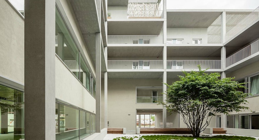 Orange Architects kiest de materialen bij de gewenste uitstraling. Ze passen hierbij verschillende typen, vormen en kleuren van beton toe.