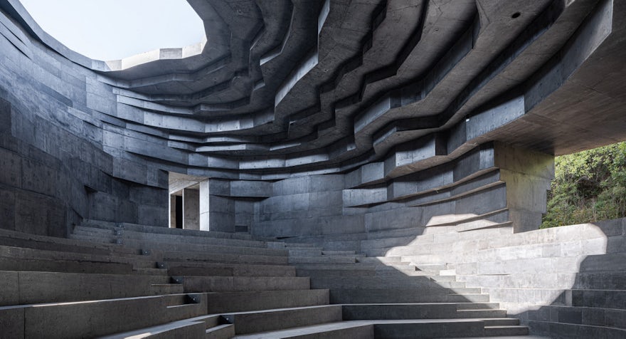 De Chapel of Sound in Chengde is een gelaagde betonnen concertzaal die esthetiek, akoestiek en natuur verenigt in een spectaculair bergdecor.