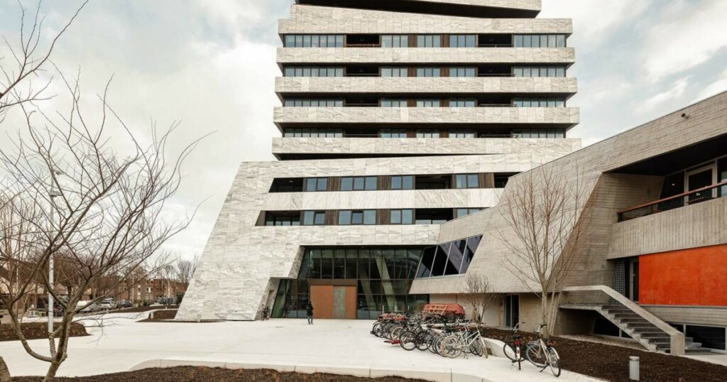 Marc Koehler Architects | De schuine vlakken in de betonnen gevel bieden een bijzonder spel van licht en schaduw.