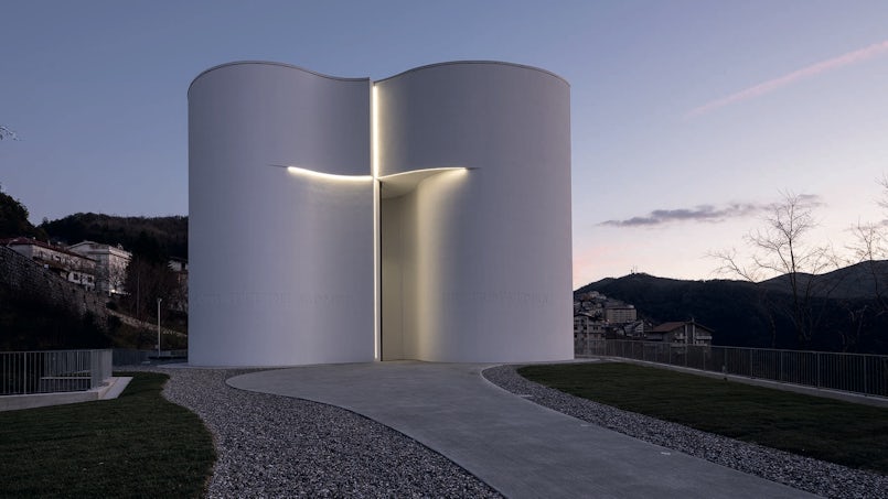 Mario Cucinella Architects | De Santa Maria Goretti kerk heeft dag en nacht een bijzondere, serene uitstraling.