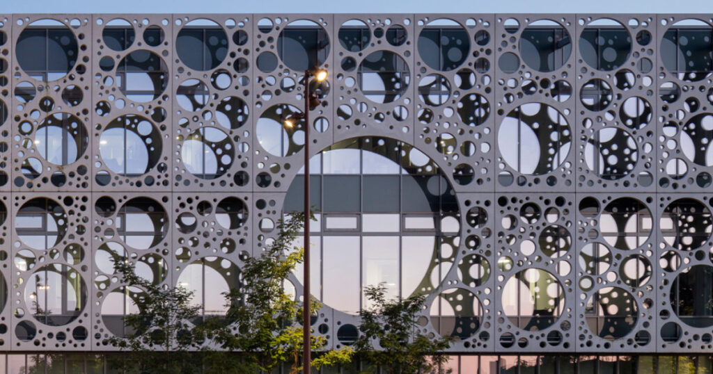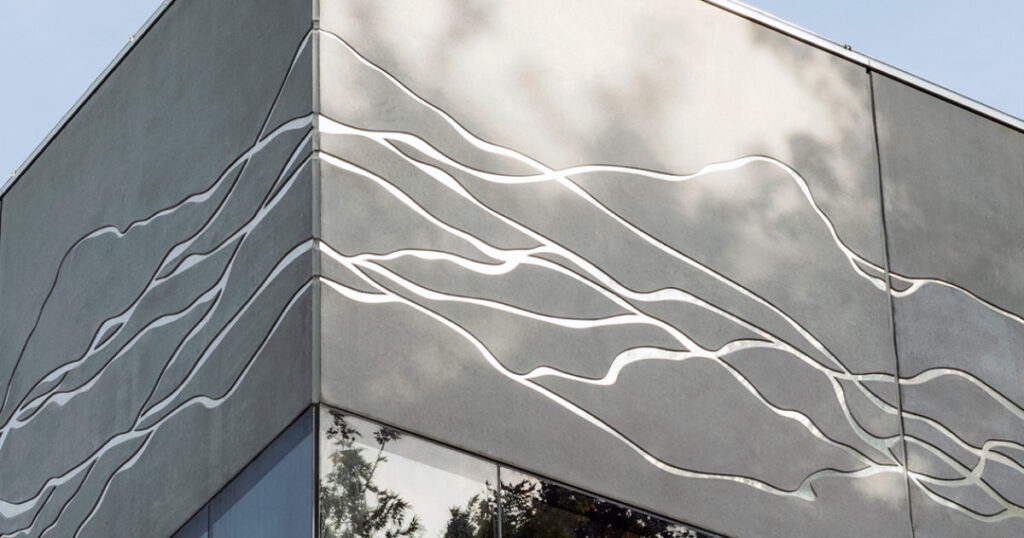 Barcode Architects | Door de schittering lijkt de facade van het Earth Simulation Laboratory op meanderende stromen in een delta.