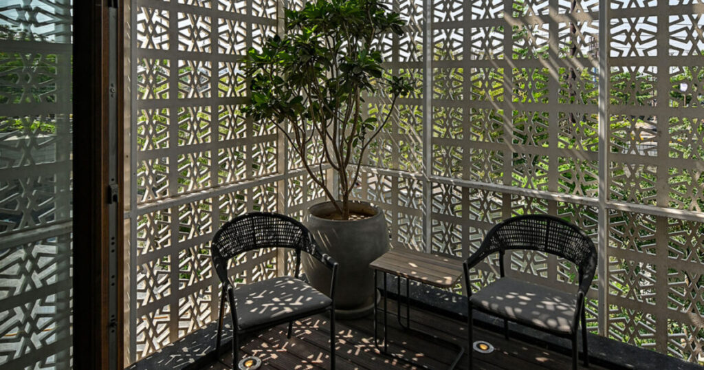 Sanjay-puri architects | Geïnspireerd door traditionele Indiase borduurtechnieken kreeg 18 Screens House opengewerkte betonnen schermen.
