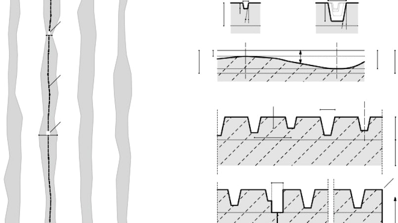 Bij bewerkingen als stralen en polijsten van elementen kan de textuur van zijvlakken verschillen van horizontale vlakken. De afstand van de grind- of natuursteenkorrels tot het oppervlak kan verschillen, waardoor er bij bewerking een ander patroon ontstaat in het oppervlak. Om de oppervlakken van twee haaks op elkaar staande vlakken hetzelfde uiterlijk te geven, is het een optie om de mal op zijn hoeklijn te zetten als een V-vorm. Hierdoor kunnen beide benen van het element op dezelfde manier worden gevuld.