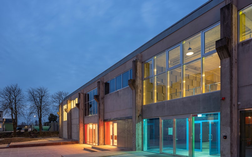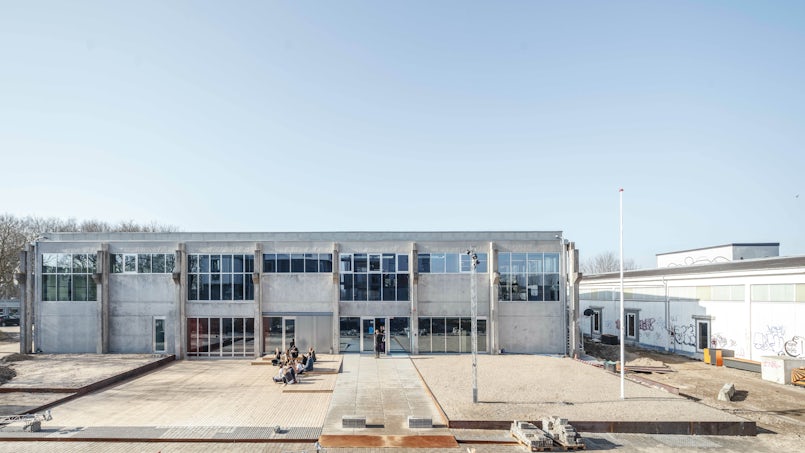 De nieuwe opleiding is gevestigd in de voormalige productiehal op het fabrieksterrein van cementproducent Unicon, dat herontwikkeld wordt tot een creatief district. De architecten hebben het gebouw in essentie gelaten zoals ze het aantroffen. Giménez-Ortega: ‘We zagen in de hal de potentie om een enorme ruimtelijke kwaliteit aan het project te geven; zo’n ‘cadeau’ moet je benutten. Daarom besloten we de ruimte open te laten en de betonnen draagconstructie in vol ornaat te tonen.’ Bouwbedrijf B. Nygaard Sørensen kreeg de opdracht om de SIB-liggers en kolommen niet aan te raken, tags te laten zitten, en reparaties van kapotte delen niet ‘mooi’ te maken, om het versleten beeld te behouden.