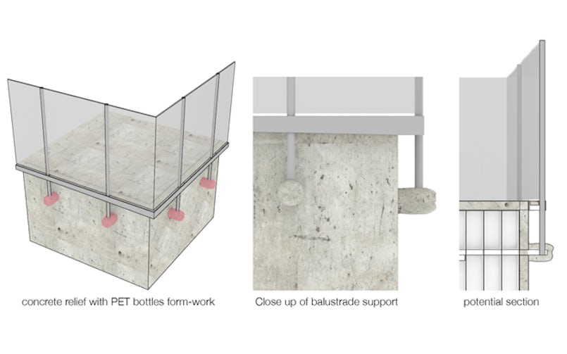 De studenten wilden de koppelpunten eerst behouden en de elementen schakelen met een strip. Later bedachten zij een systeem waarbij de koppeling kleiner uitgevoerd kan worden en alleen aan de buitenzijde van het platform een uitsteeksel komt. Hier kan indien nodig een hekwerk aan bevestigd worden.