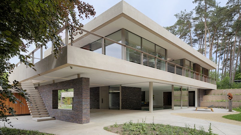 De woning is opgebouwd uit horizontale betonnen platen, verschoven ten opzichte van elkaar, zodat er ruimte ontstaat voor doorgangen en terrassen (foto: René de Wit)