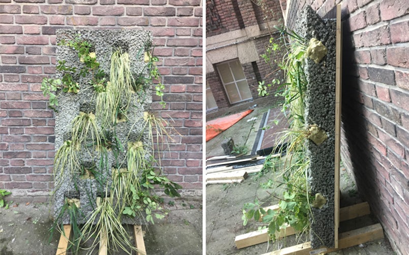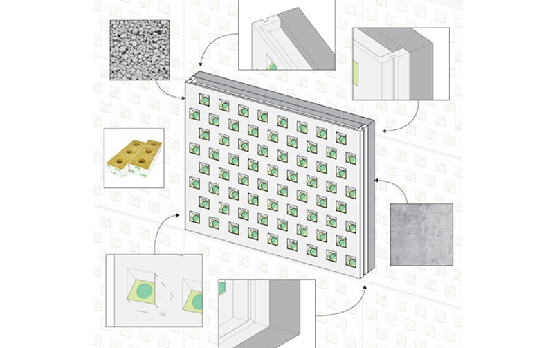 Overstroomde straten en wegen zijn in veel steden al een enorm probleem dat alleen maar erger wordt door klimaatverandering. Om de riolering te ontlasten is er veel aandacht voor waterberging op het dak, maar de gevel kan hierin ook een belangrijke rol spelen. Een Multi-façade gevelelement kan dat water bufferen en tegelijkertijd door zijn begroeiing biodiversiteit, vermindering van luchtverontreiniging en geluidsoverlast en het menselijk welzijn bevorderen. Ook hier is het achterliggende principe dat een betonnen object niet alleen meer geproduceerd wordt vanwege zijn primaire functie (in dit geval een gevelpaneel), maar tegelijkertijd een bijdrage levert aan het repareren van intrinsieke productieschade zoals uitstoot, afval en opwarming. Met andere woorden: het gevelelement krijgt meerdere functies, bovenop de primaire functie van ’esthetische regenjas’, om daarmee te helpen in onze milieu- en klimaatuitdagingen.
