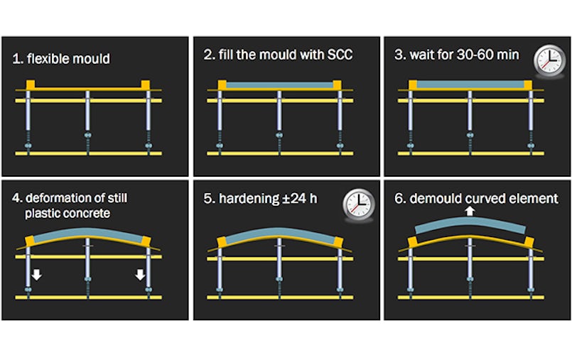 Aan de TU Delft in samenwerking met TU Eindhoven is de Kine-Mould ontwikkeld. Met behulp van deze flexibele herbruikbare mal kunnen kleine series of zelfs unieke elementen met veel vormvrijheid worden gemaakt. Dit met behoud van de snelheid, herbruikbaarheid en economie van het traditioneel storten van betonelementen in platte mallen. Parallel aan het onderzoek aan beide TU’s ontwikkelde betonproductenfabrikant mbX in Bergen op Zoom geheel zelfstandig een vergelijkbaar principe. Blijkbaar is de tijd rijp voor deze innovatieve techniek. Door mbX is deze techniek kort geleden voor het eerst toegepast voor de dakelementen van de Arnhem OV Terminal. Bijzonder aan de techniek is dat beton op een horizontaal malvlak wordt aangebracht, dat na enige tijd (en sterkteontwikkeling) wordt vervormd.