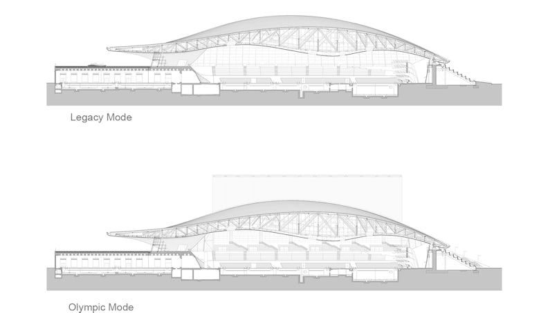 Het Olympische Aquatics Centre Londen wordt aangepast voor een lange toekomst als iconisch zwemsportcomplex. In een langdurig ontwerpproces – dat al begon voordat was besloten dat Londen de Olympische Spelen van 2012 zou mogen organiseren – werd van het druppelvormige Aquatics Centre van Zaha Hadid Architects zowel een tijdelijke als een permanente versie gemaakt. Voor de duur van het grote sportevenement kreeg het gebouw extra tribunes en faciliteiten. Op de nadrukkelijke wens van de opdrachtgever werden alle beslissingen over materialisering en dimensionering langs een strenge milieulat gelegd.