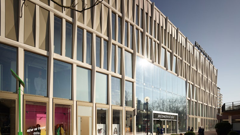 Het voormalige V&D-gebouw in het centrum van Amstelveen is gestript tot op het casco, uitgebreid en heringericht tot hedendaags, luxe warenhuis. Het warenhuis is voorzien van een nieuwe prefab betonnen gevel met haarscherpe belijning naar ontwerp van Rijnboutt.