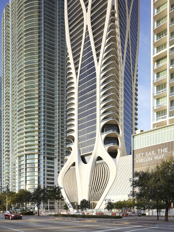 In de Amerikaanse kuststad Miami bouwde Zaha Hadid Architects een wolkenkrabber met een uitwendig skelet van beton: One Thousand Museum. De naam verwijst naar het adres, 1000 Biscayne Boulevard, pal tegenover het Museum Park. Aan dat park met zijn grote musea wilden de ontwerpers een ‘kunstwerk’ toevoegen: een superdeluxe appartementencomplex in de vorm van een 210 m hoge sculptuur. De complexe betonconstructie is op innovatieve wijze gebouwd.