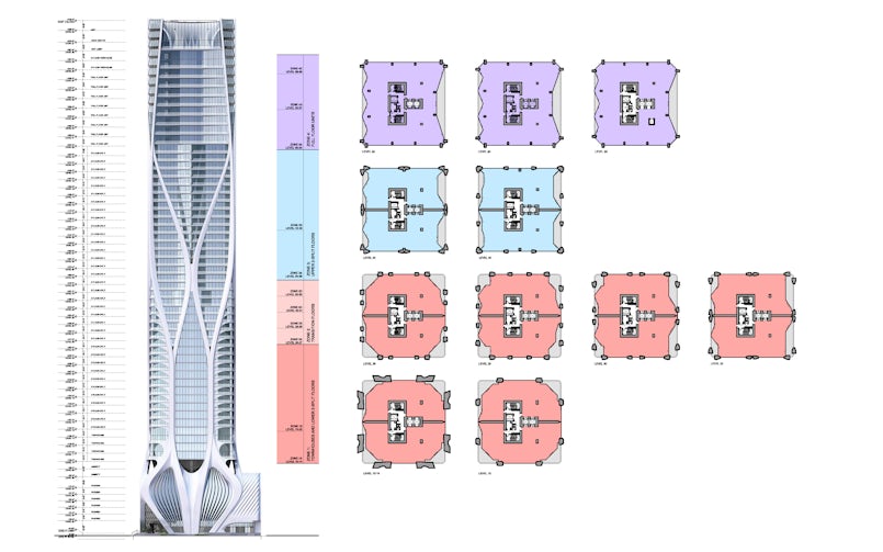 De uitwendige skeletstructuur die de basis vormt voor het ontwerp van Zaha Hadid Architects, biedt meer dan een spectaculair beeld. Door de constructie buiten de woningen te ‘duwen’, hebben de ontwerpers open ruimtes en balkons met bijna geen kolommen en tussenwanden gecreëerd, waarin de bewoners genieten van onbelemmerd uitzicht. De skeletstructuur volgt de indeling aan variatie van woningtypen.