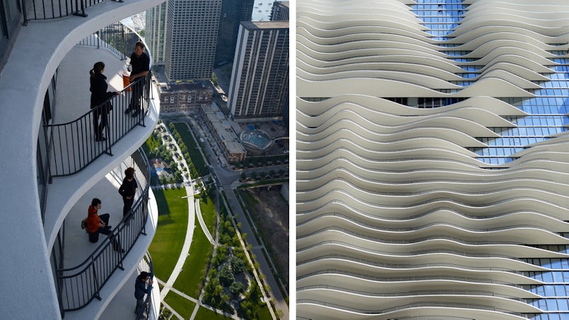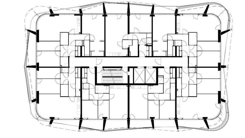 Voor Jeanne Gang is het sociale aspect van groot belang. Eerder bracht zij dit concept ook in bij woontorens zoals Aqua in Chicago. Door de vorm van de balkons te verschuiven ten opzichte van de verdiepingen erboven, ontstaat de mogelijkheid tot interactie met de buren. De verticale vinnen bieden daarnaast voldoende privacy. “De woningen zijn ontworpen van binnen naar buiten: de vorm van het grid aan de buitenkant is bepaald aan de hand van zichtlijnen vanuit de woning naar het omliggende park en activiteit op straatniveau”, licht Jeanne Gang toe.
