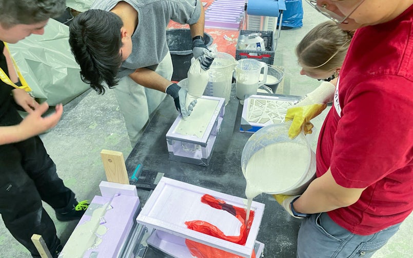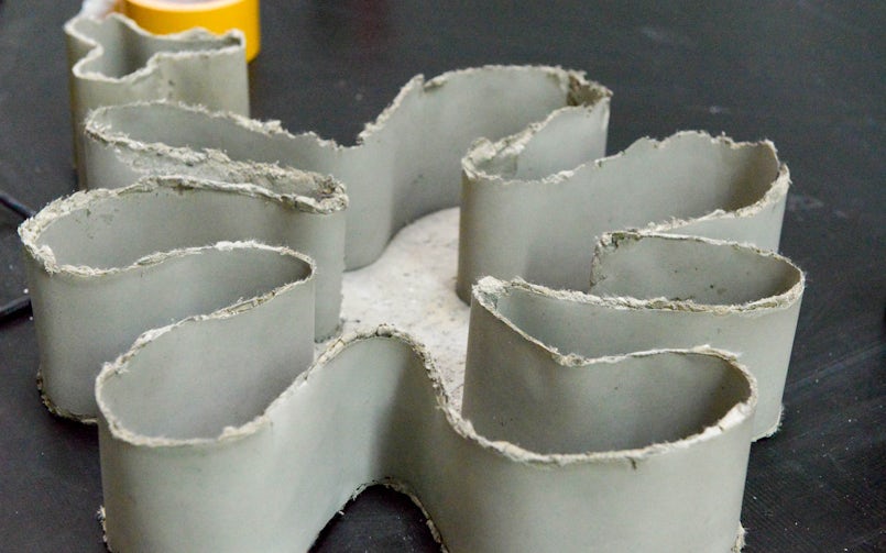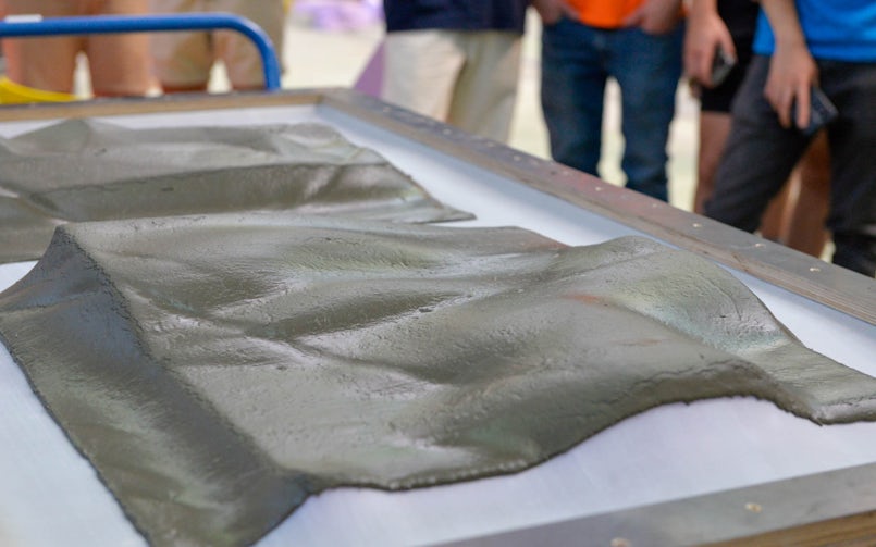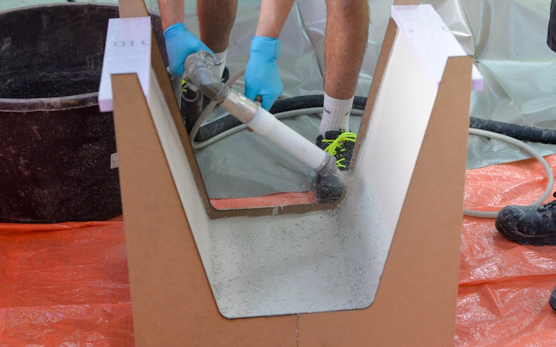De studenten konden beschikken over een super vloeibare Ultra Hoge Sterkte Beton dat letterlijk elke textuur van de mal overneemt zodat het beton de uitstraling van bijvoorbeeld fluweel of van porselein kan krijgen. Men bedacht zelfs dat een model ook in dit mengsel gedoopt zou kunnen worden om heel bijzonder gedetailleerde spitse vormen te maken. Dit mengsel kan ook op een ondergrond gespoten worden. Hiermee kan een dunne laag gemaakt worden op een complexe vorm.