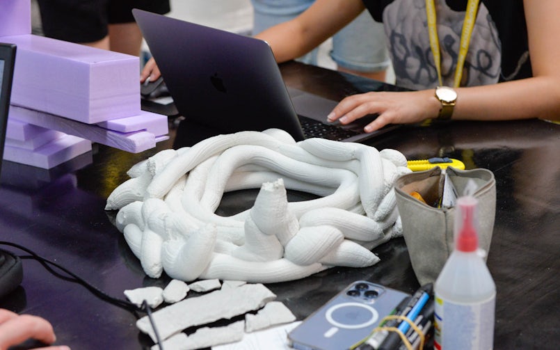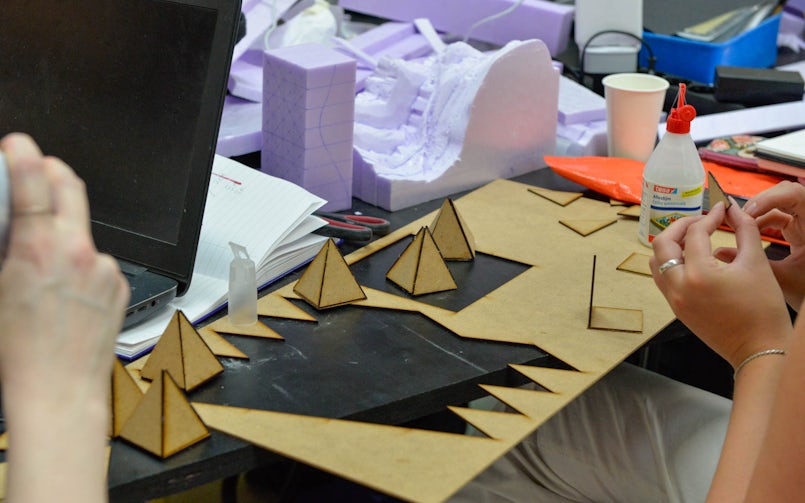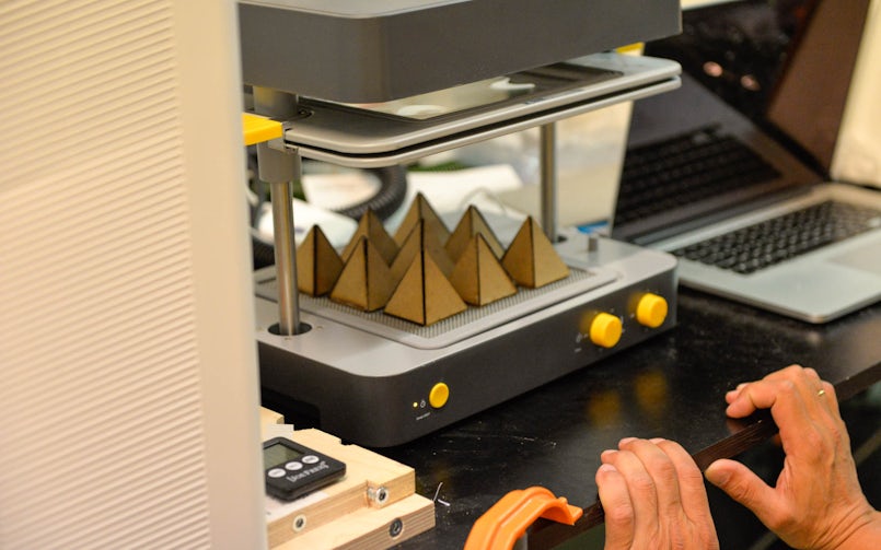 Naast de beschikbare productietechnieken in het betonlaboratorium waren er verschillende maltechnieken beschikbaar, die Siebe Bakker had meegenomen. Hij heeft inmiddels een hele verzameling aan apparaten zoals heavy duty naaimachines voor het naaien van zeil voor textielgevormde constructies, een 3D printer en een vacuümvormer (beide voor plastic), een foam-frees en een lasersnijder voor multiplex. De studenten maakten hier gretig gebruik van in een bijzondere dans van mix-and-match.