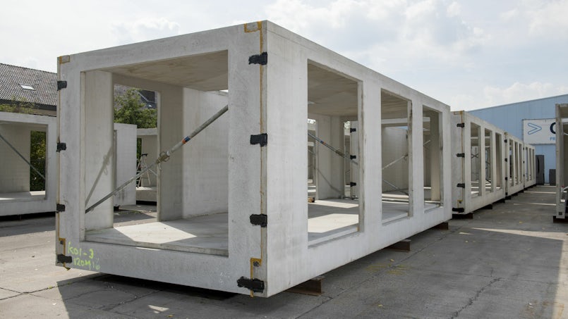 Een betonnen ‘legosteen’ (3,8 x 9,8 m en 2,8 m hoog, schakel- en stapelbaar tot maximaal vijf lagen, van binnen en buiten naar wens af te werken, verplaats- én herbruikbaar), dat is Circle, de woonmodule met een woonoppervlak van 35 m2, die KAAN Architecten samen met prefab betonproducent Casco Totaal en ingenieursbureau ABT heeft ontwikkeld in antwoord op de grote woningbouwopgave waar Nederland voor staat. “Het idee komt voort uit een ander project waarmee we bezig waren, dat op- en afgeschaald moest kunnen worden”, vertelt architect Timo Cardol van KAAN Architecten. “Een idee dat aansluit bij de enorme behoefte aan tijdelijke, flexibele woningen voor studenten, starters, doorstromers. En als je bedenkt dat beton – naast betaalbaar en mooi – een materiaal is dat minstens 200 jaar mee kan, dan heb je een duurzaam systeem.”