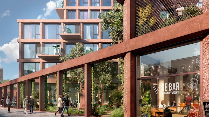 Highnote in Almere met opvallende zelfdragende prefab betongevel (render: Absent Matter)
