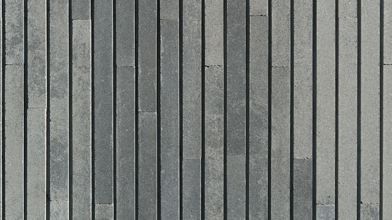 De grijs genuanceerde langformaat stenen zijn volledig verticaal gemetseld (foto: MBI De Steenmeesters)