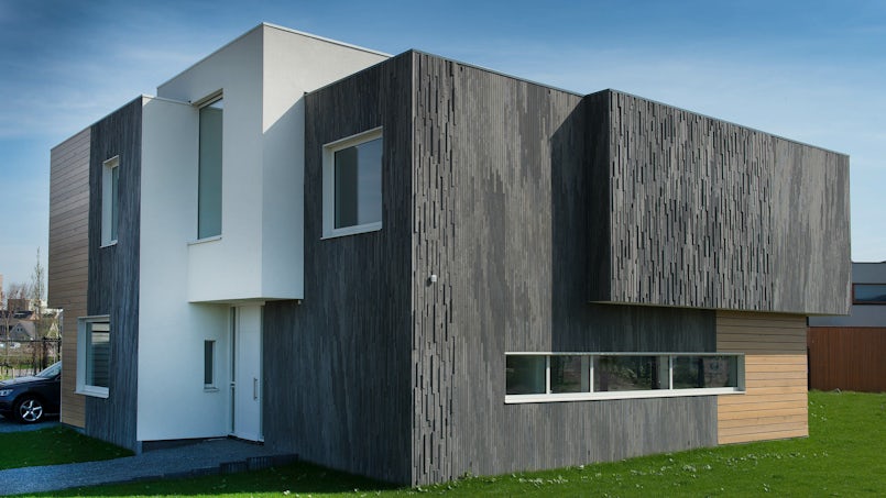 Dit project in Delft laat zien dat een langformaat gevelsteen een goede keuze kan zijn, zeker als je bepaalde gebouwonderdelen extra in het zicht wilt laten springen. ‘Door de a-typische afmetingen is een bijzonder lijnenspel gecreëerd. Daarbij profiteer je van de voordelen van beton (betaalbaar, efficiënt te verwerken door extreme maatvastheid en duurzaam), gecombineerd met de oogstrelende esthetische kenmerken van natuursteen.’