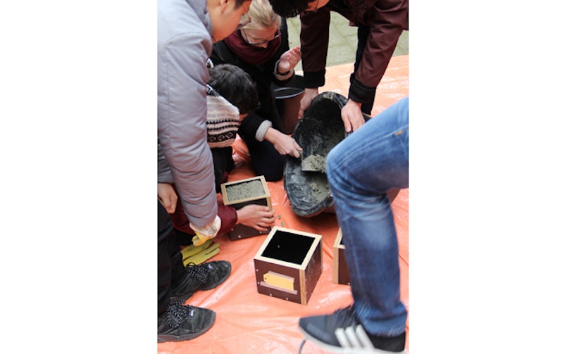 In de eerste paar lessen maken de studenten kennis met de eigenschappen van beton en gaan zij zelf een aantal testkubussen mixen en storten. Vervolgens wordt invulling gegeven aan een ontwerpopdracht met de geleerde eigenschappen van beton in gedachten. Met het maken van een model ontdekken de studenten meer van de eigenschappen van het storten van beton. De objecten moeten bijvoorbeeld ook weer ontkist worden en dat vraagt om aanpassing in de vormgeving. Met deze ervaring van een serie test-storten passen zij het ontwerp aan voor het definitieve model.