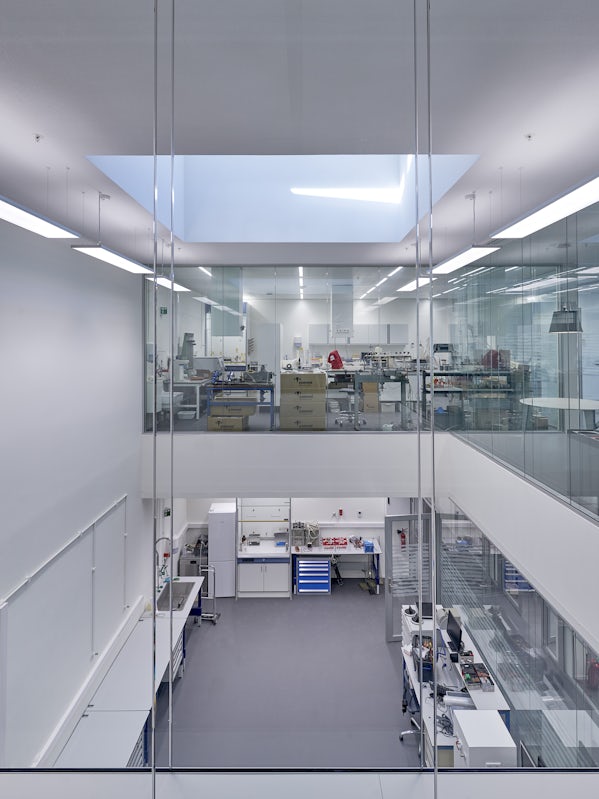 De inpandige laboratoriumruimtes zijn optimaal voorzien van licht door de daklichtkoepels (foto: Studio Hans Wilschut)