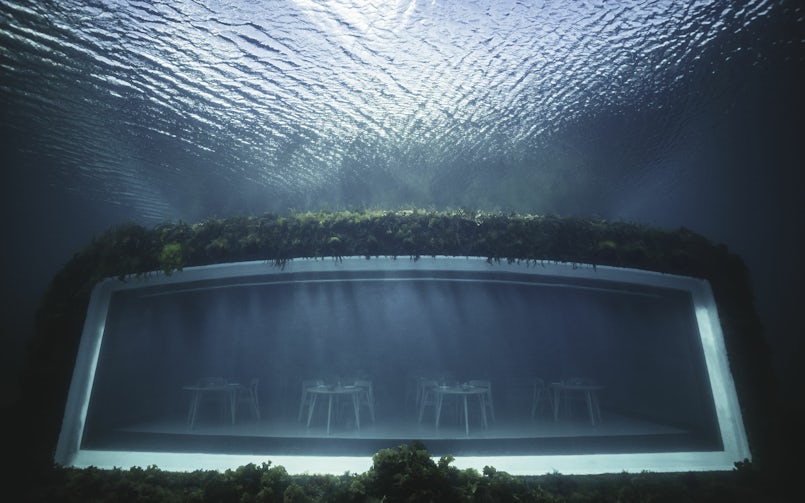 Vijf meter onder de zeespiegel dineren? Dat kan in Under, het eerste onderwaterrestaurant van Europa in Lindesnes, Noorwegen, ontworpen door architectenbureau Snøhetta. Ook voor maritiem onderzoek biedt het gebouw nieuwe mogelijkheden. Een waterdichte betonnen schaal vormt het casco. Het beton is in het werk gestort nabij de locatie en met behulp van een hijskraanschip naar de zeebodem gedrukt en verankerd.