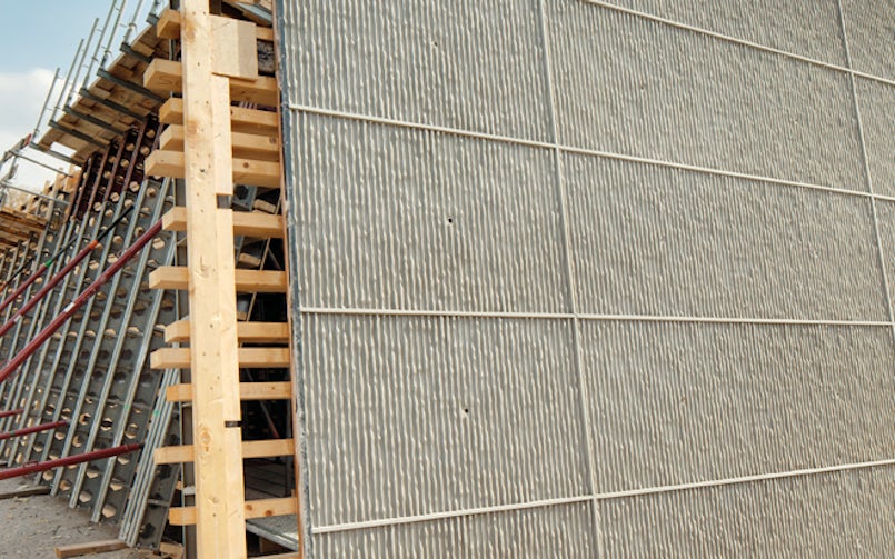Het is verstandig al in de ontwerpfase rekening te houden met het ontkisten van een rijk geprofileerde betonnen wand. “Ontkisten is net zoiets als een cake uit zijn vorm halen, dat moet je even de tijd gunnen”, vertelt Steven Gelderman, expert op het gebied van mal- en bekistingstechniek. “Voor het ontkisten van een betonnen element moet namelijk een vacuüm worden opgeheven. Goed ontkisten is het behoud van je beton en het behoud van je mat. Bij correct gebruik kunnen NOEplast structuurmatten 80 tot 100 keer worden hergebruikt.”