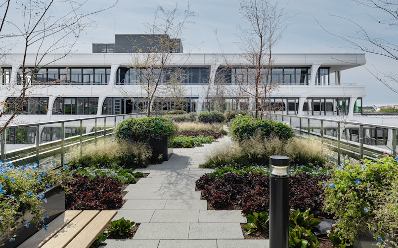 De gebouwstructuur zorgt er niet alleen voor dat het grote complex zich op passende wijze tussen de bestaande bedrijfspanden voegt, maar speelt ook een rol in het creëren van een prettig klimaat in de stedelijke omgeving; een massief gebouw zou windoverlast geven. Het atrium met zijn glazen gevels speelt een sleutelrol in het energiezuinige concept voor het binnenklimaat. Energie voor verwarming en koeling wordt opgewekt met behulp van warmte-koudeopslag in de grond, elektriciteit met de zonnepanelen op het dak. In de ondergrondse garage zijn 28 oplaadpunten voor elektrische auto’s, al hoopt het bedrijf dat werknemers vooral op de (elektrische) fiets komen; daarvoor zijn 190 overdekte stallingsplekken ingericht, waarvan 100 met oplaadpunt. Dit alles heeft ervoor gezorgd dat het gebouw de hoogste (Platinum) certificering van het German Sustainable Building Council (DGNB) kreeg.