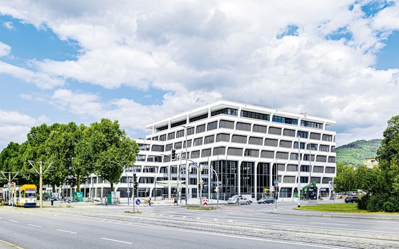 Het openingsfeest dat in juni 2020 gepland was, kon door de coronapandemie niet doorgaan, maar de komst van het nieuwe pand zal Heidelbergers niet ontgaan zijn. De gevels van het pand zijn letterlijk oogverblindend; op een zomerdag heb je een zonnebril nodig om het spierwitte sierbeton te bekijken. Het nieuwe complex, dat het oude kantoorpand uit 1963 vervangt, is ontworpen als een stedelijk ensemble van drie gebouwdelen, die zich in hoogte van elkaar onderscheiden, en met elkaar verbonden zijn door een centrale hal annex passage.
