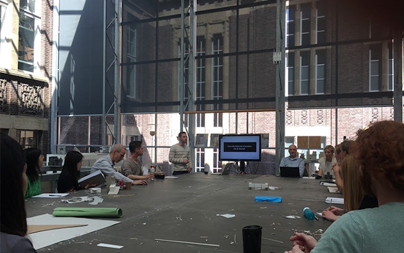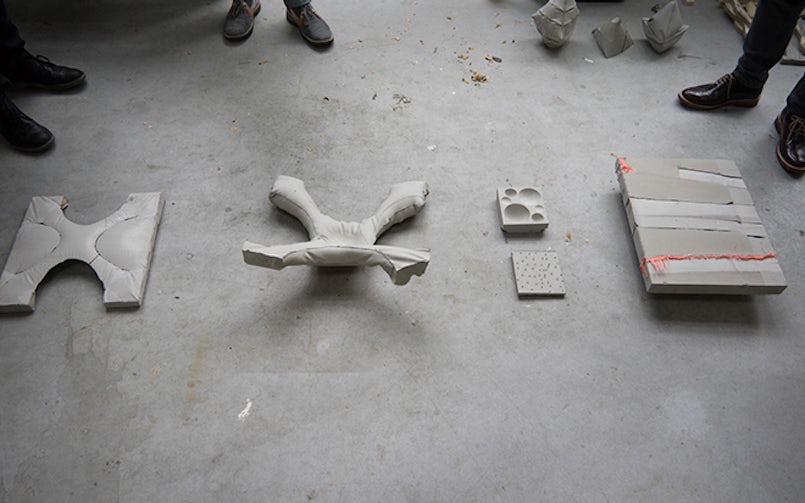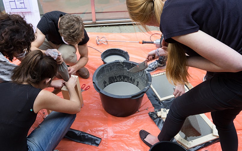 De hands-on Tektoniek-betonworkshop voor 20 studenten Architecture en Structural Engineering aan de TU Delft stond in het teken van ornamentiek in bouwdetails en –constructies. In de periode april-mei 2016 hebben zij aan de hand van het daadwerkelijk maken van betonnen modellen ervaring opgedaan in het ontwerpen vanuit het materiaal. Elke groep heeft diverse prototypes gemaakt met behulp van textielmallen (op een uitzondering na), waarmee elegante en constructief optimale vormen met verfijnde textuur materiaalefficiënt te maken zijn. De series van betonelementen tonen deze zoektocht naar de relatie tussen architectonische expressiviteit, constructieve werking en maakbaarheid. De workshop was gekoppeld aan het vak Ornamatics, een onderdeel van de masteropleiding Vormstudie.