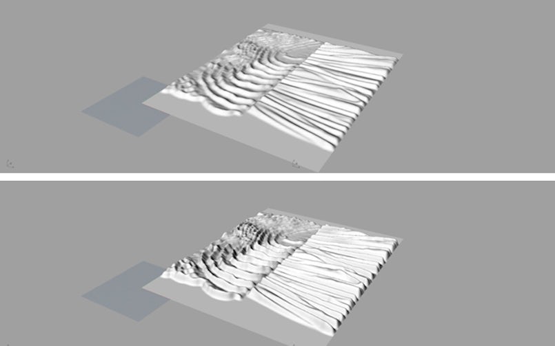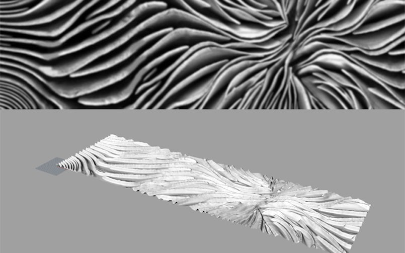 In de digitale verwerking zijn verschillende regels opgenomen voor de praktische uitvoerbaarheid. De afstand tussen de reliëfribben wordt bepaald door de dikte van het uitstekende gedeelte zodat de ribben sterk genoeg zijn en er een geleidelijke overgang van de vorm ontstaat voor het ontkisten. In het initiële beeld lagen de reliëfribben iets te dicht op elkaar, met een te fragiel 3D-ontwerp als gevolg. Door iets in te zoomen op het ontwerp en gebruik te maken van een Gaussian Blur-nabewerking is hierin een juiste balans gebracht.