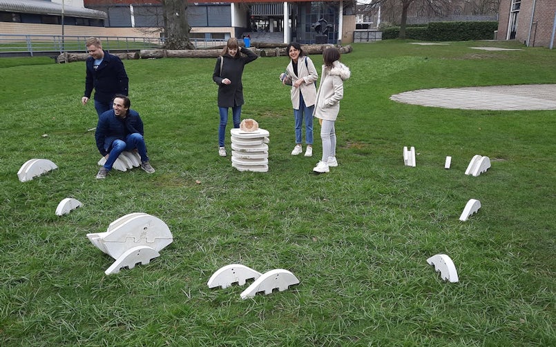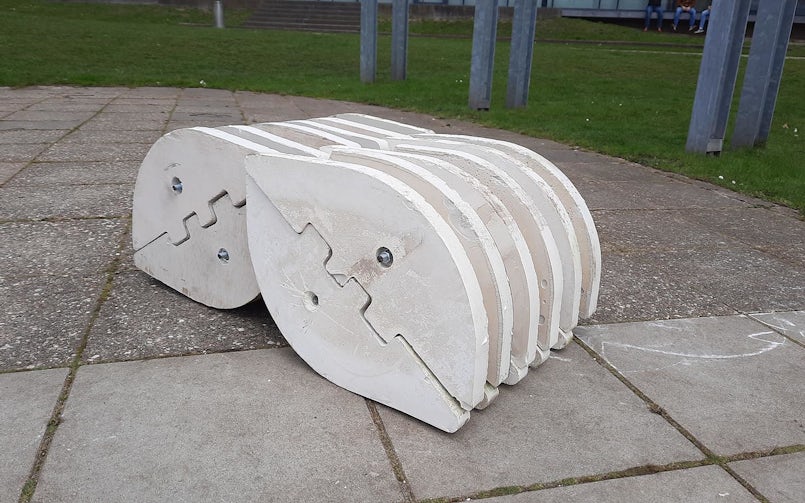 Verschillende materialen voor de mal en betonsamenstellingen werden getest en beoordeeld. Met nieuwe inzichten en materiaalkennis werd gewerkt aan de opgave. De opgave: met een buitenmeubel op de binnenplaats van Fontys studenten van verschillende opleidingen activeren en samenbrengen. Voor de eindopgave werkten de studenten in twee grotere groepen, waarbij de ene groep tot een gezamenlijk ontworpen element kwam en de andere groep individuele geschakelde elementen ontwierp. Hun ontwerpverhaal verbeelden zij in een video.