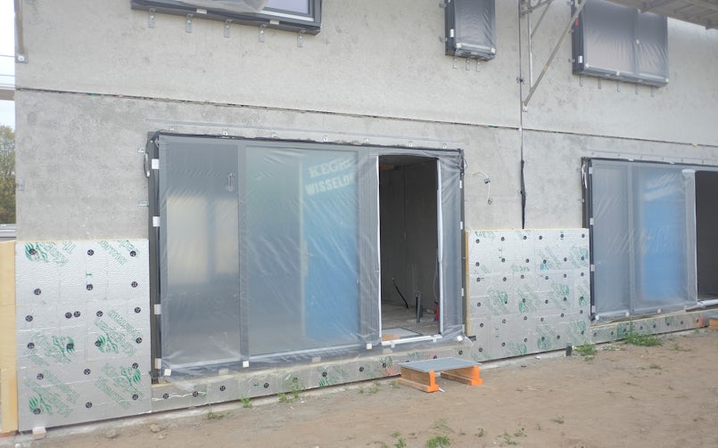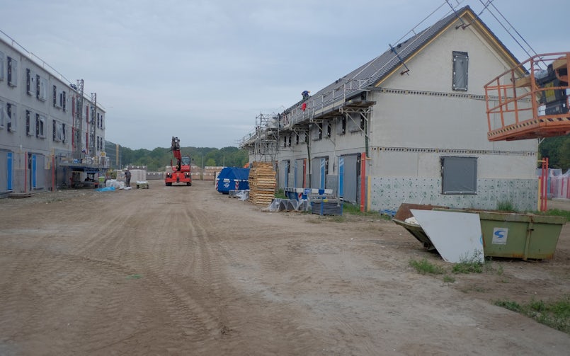 In de Eindhovense wijk Vredeoord is het de architecten gelukt om met een standaardbouwsysteem een gevarieerde, aantrekkelijke buurt te maken. De 200 gezinswoningen en 50 appartementen zijn gebouwd in opdracht van woningcorporatie Trudo, door bouwbedrijf Hazenberg, samen met Voorbij Prefab. Hazenberg en Voorbij zijn beide onderdeel van bouwbedrijf TBI. Hazenberg gebruikt het beterBASIShuis concept van TBIwoonlab. Voorbij is de producent van het prefab betonnen casco van deze conceptwoning. “In de uitvraag stond dat het snel moest, het stedenbouwkundig plan lag er al. Het cascosysteem van Voorbij, met kant en klare woningscheidende wanden en binnenspouwbladen, was daarvoor geschikt.” In de gerobotiseerde fabriek van Voorbij worden de ontwerpen vanuit BIM-modellen ‘ingelezen’, en de elementen vervolgens in de kistmachine gestort, inclusief doorvoeren voor elektra. Daarna worden ze per vrachtwagen naar de bouwplaats vervoerd. Dagelijks kwamen er zo’n twintig vrachtwagens aan, binnen een jaar stonden er 250 woningen.