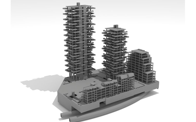 Het plan bestaat uit de twee woontorens, een lager wooncomplex en een kantoorgebouw. De constructie van beide torens bestaat volledig uit in situ beton en is opgebouwd uit een stabiliteitskern en recht boven elkaar geplaatste kolommen in de gevel.