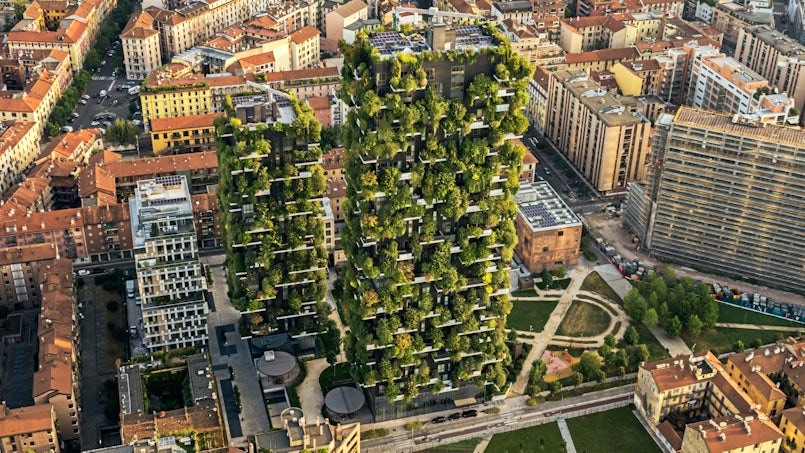 Niet lang geleden werden hoogbouwplannen met zware plantenbakken op hoogte nog weggelachen als onrealistisch en te duur. Maar sinds 2014 staat in de Italiaanse stad Milaan, aan de rand van de Isola-wijk, de fysieke vertaling van een verticaal bos. Beton werd gekozen als de drager voor deze biodiversiteit. Sindsdien is het draagvlak voor dit soort plannen enorm gegroeid. Het duurzame woonconcept van Boeri Studio reist nu de hele wereld over.