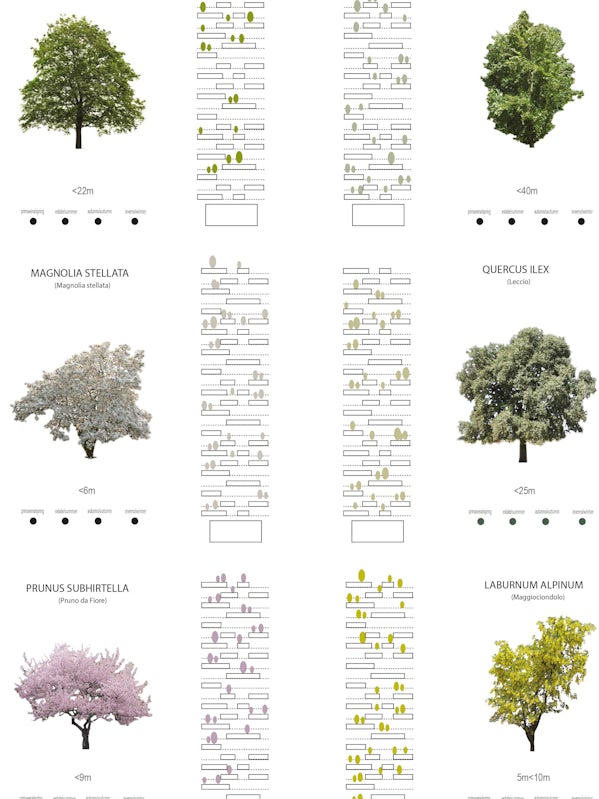 Aan de bouw van Bosco Verticale in Milaan is een uitgebreide studie voorafgegaan naar ecosystemen van bomen. Een selectieproces van wel twee jaar ging vooraf aan de definitieve keuze voor de juiste planten- en boomsoorten. Daarin is getest welke bomen het meest geschikt zijn om te groeien in potten aan de rand van balkons in een hoge toren. De studie is verricht in nauwe samenwerking met een groep botanisch experts. De gekozen planten en bomen zijn vervolgens gekweekt onder omstandigheden die vergelijkbaar zijn met de condities op de balkons. Zodoende is de overgang naar de definitieve standplaats zo klein mogelijk gemaakt.