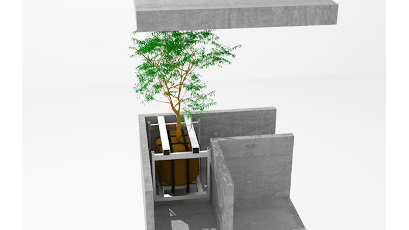 De betonnen plantenbakken in de balkons zijn voorzien van een waterdichte folie en bevatten een driedubbel veiligheidssysteem. Het eerste deel bestaat uit een stalen frame bevestigd aan het betonnen balkon. Ten tweede hebben alle bomen elastische banden die de kluit verbinden met het stalen frame. De derde beveiliging is alleen nodig bij de bomen op de meest kritische posities qua windbelasting, zoals op overhoekse balkons. Een stalen kabel is bevestigd om de stam net onder de kroon van de boom en is gezekerd aan het balkon erboven.