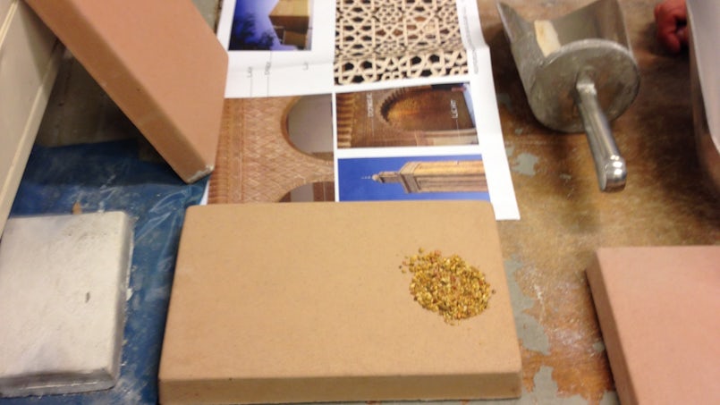 Voor het gietproces zijn drie mallen op maat gemaakt: twee voor de wanden en een aparte mal voor de minaret.