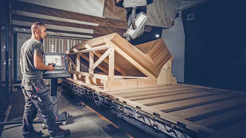 Ook voor de MDF-bekisting is iets slims bedacht: het ontwerp voor de gevel is geheel opgezet in 3D. Vervolgens berekende een computerprogramma hoeveel elementen er uit één blok MDF konden worden gehaald. ‘Daarna zijn de elementen van klein naar groot uitgefreesd. Zo kwamen er uit één blok misschien wel tien verschillende panelen.’ Ook bij het creëren van de panelen voor de hoofdentree bracht het BIM-model uitkomst. Deze ingang moest met extra krommingen het publiek als het ware naar binnen ‘zuigen’. Via aanpassingen in het computermodel was meteen het effect zichtbaar qua maakbaarheid en voegverdeling. ‘Zo konden wij aangeven wat het gewenste beeld was en zag de leverancier gelijk welke maltechniek hij kon toepassen.’