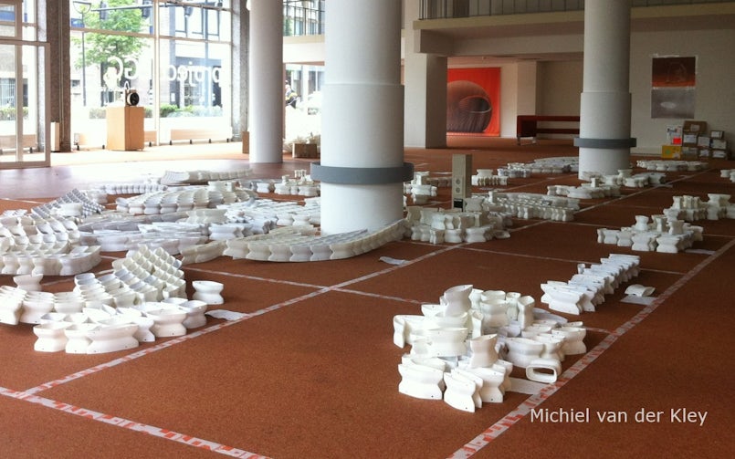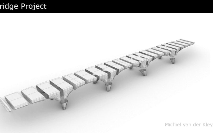 De volgende stap is het 3D-printen van beton, waarin Michiel ook veel zelf heeft geëxperimenteerd. Het ontwerp van de brug in Nijmegen in opdracht van Rijkswaterstaat heeft hij ontworpen in het team met engineering en uitvoering samen (BAM, Weber Beamix, Summum Engineering en Witteveen+Bos). De brug is geïnspireerd op een schelp en kan zich parametrisch aanpassen aan afstand van oever tot oever, de breedte, de zwaarte van het verkeer. Hierdoor ontstaat een ‘familie’ van bruggen.