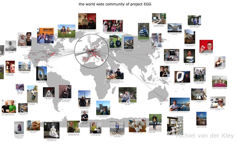Michiel van der Kley verbeeldde zich hoe het zou zijn om in zo’n organisch gevormde ruimte te staan. Hij begon met een huisprinter voor kunststof en bedacht dat hij in zijn eentje wel erg lang bezig zou zijn om alle delen te printen. Daarom deed hij een oproep op onder meer social media en over de hele wereld gaf men gehoor aan die oproep. Zo werd ‘project EGG’ werkelijkheid.
