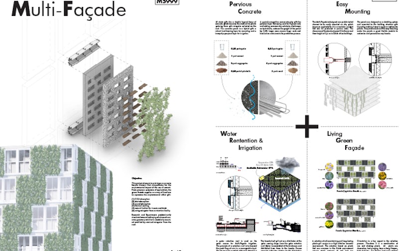 De jury was enthousiast over het idee van een groene gevel waarbij de porositeit van de gevel zelf zorgt voor de waterdistributie. De planten groeien in holtes die gevuld zijn met substraat, dat het water vasthoudt voor de plant. De eenvoud van het ontwerp en de goed toegelichte technische uitvoering maakt dat het idee goed industrieel te vervaardigen is. De jury had wel graag de distributie van het water van het ene naar het andere paneel getest willen zien. En het paneel zelf of de plaatsing van de holtes had nog wat meer esthetisch uitgewerkt kunnen worden.