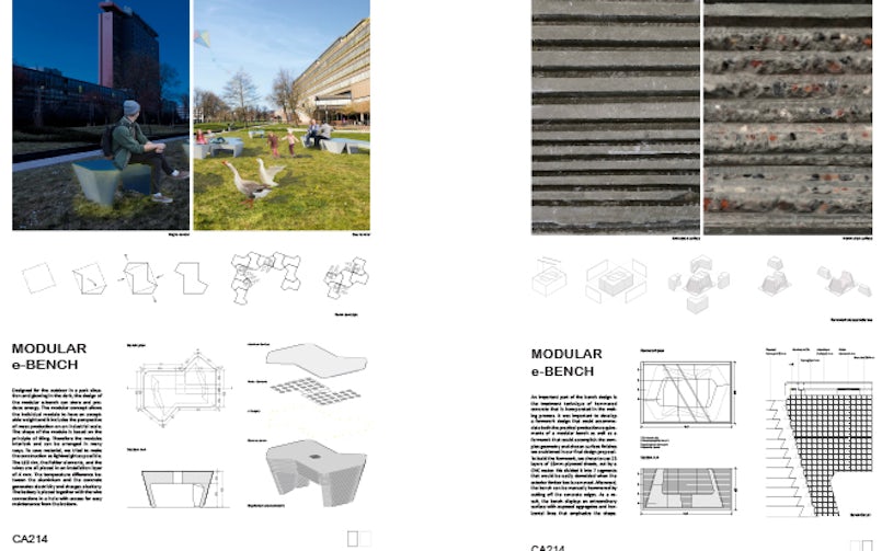 CA214 Modular e-bench is ingediend door Nigel Flanagan, Bethany Kiss, Sofia Pavlova, Leon Thormann van de TU Delft.