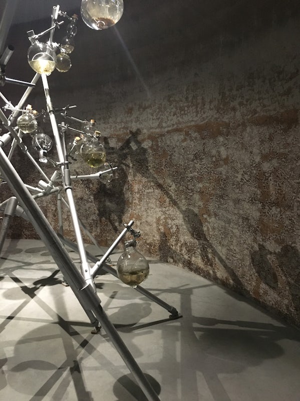 We waren te gast in de watertoren in Delft en mochten een blik werpen in de ondergrondse watertank van beton, nu kunstcentrum. IJzerhoudend water heeft bijzonder mooie patronen op de wanden achter gelaten.