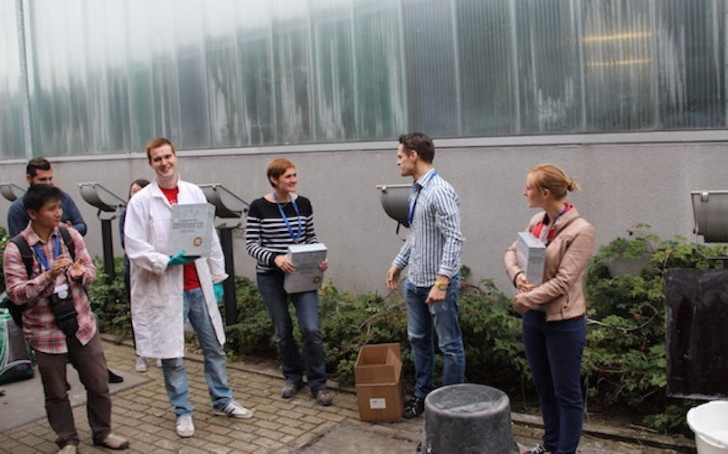 Onder bevlogen (bege)leiding van de workshopcoördinatoren werden de deelnemers in groepjes aangespoord om vooral de handen uit de mouwen te steken. Want in slechts een paar uur tijd moest de vorm van de mal worden bepaald en geprepareerd om vervolgens te worden gevuld met beton. De drie deelnemers die de betekenis van de kreet ‘hands-on’ het beste vertaalden, werden namens Tektoniek beloond met een mooi cadeau.