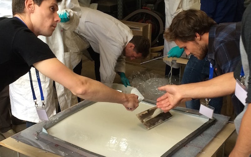 Tussen het harde werken door was er echter voldoende gelegenheid om de drie maltechnieken van dichtbij te bestuderen, om alles te weten te komen over het toegepaste betonmengsel en om in ontspannen sfeer te netwerken.